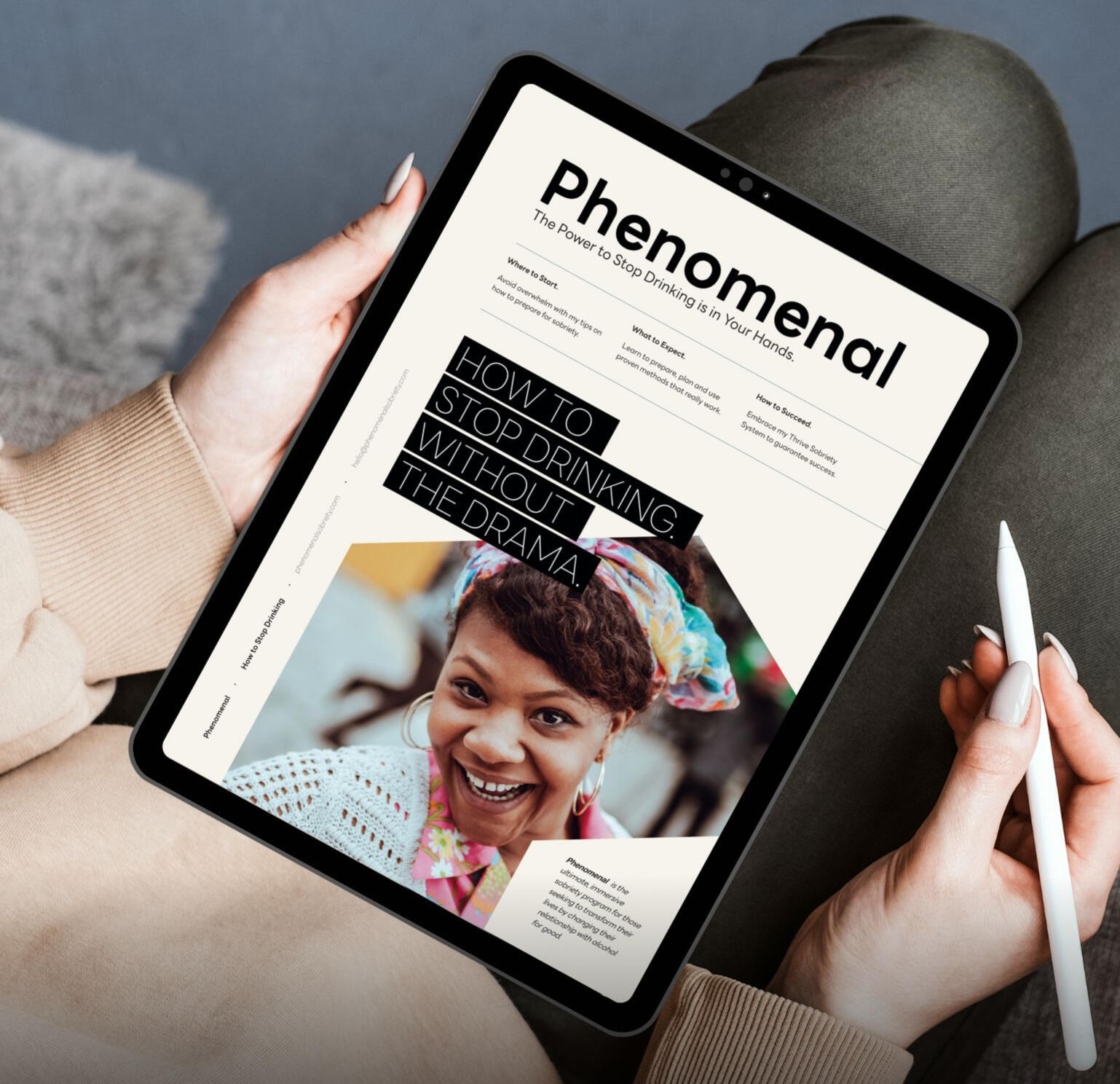 Phenomenal is the ultimate immersive online sobriety program for people ready to transform their lives by changing their relationship with alcohol for good. Built on the proven Thrive Sobriety System, combining professional expertise with lived recovery experience.
